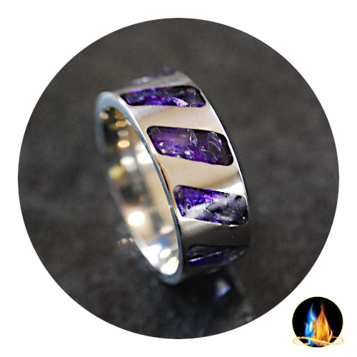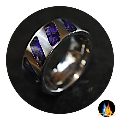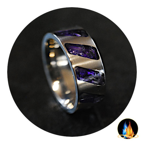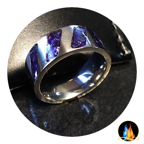 • Broken Purple Glass Inlaid in Angled Rectangle Titanium Band