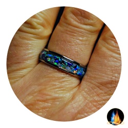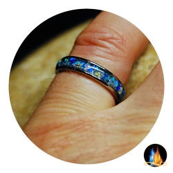 Mermaid Aquarian Opal Ring Stainless Steel Band 4mm