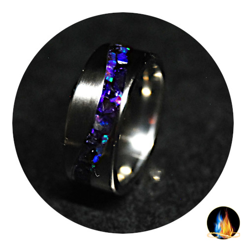 Indigo Opal & Broken Purple Glass Inlaid in 'S' Wave Titanium Band