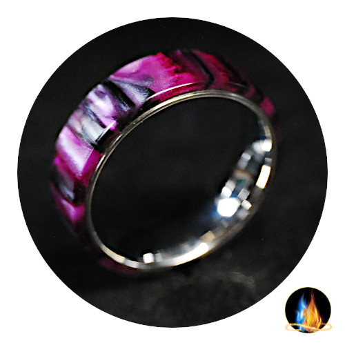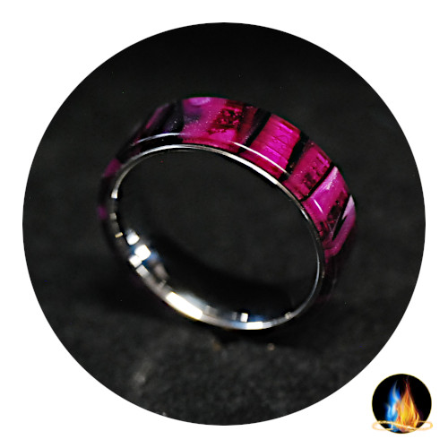 Magenta Acrylic Ring on Stainless Steel Band 8mm