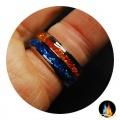 Dual Channel Stainless Steel Ring inlaid with Orange Fire Crushed Opal on Comfort Band. The Fire Orange Crushed Opal inlay is encased in acrylate for a high gloss, very durable waterproof finish for daily wear!
