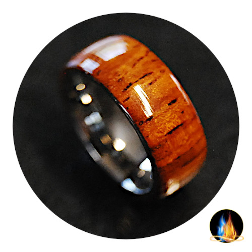 Beautiful Yucatan Rosewood mounted on Medical Grade Stainless Steel Comfort Band. The Exotic Wood is encased in acrylate for a high gloss durable finish. This wood ring should NOT be immersed in water!